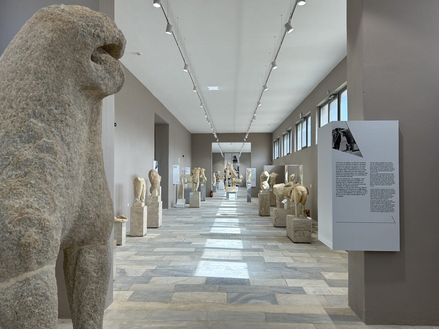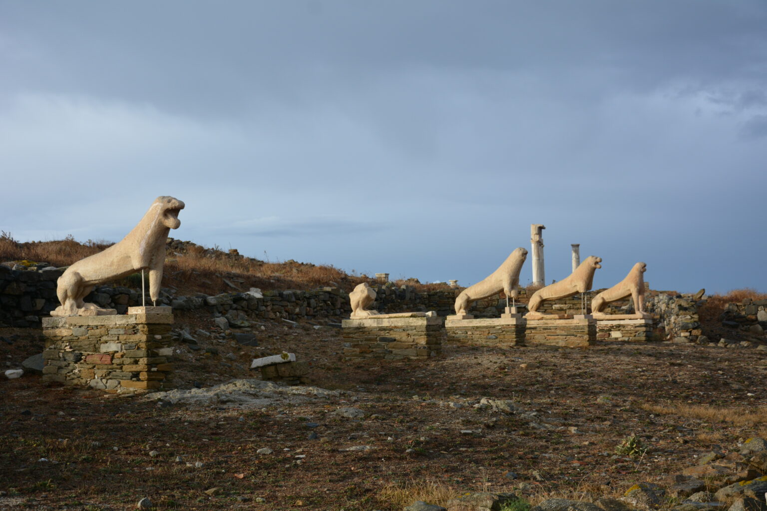 Η πιο εμβληματική εικόνα της Δήλου, όμως, είναι δίχως άλλο τα επιβλητικά μαρμάρινα αγάλματα της Λεωφόρου των Λεόντων. Από τους 16 λέοντες σώζονται σήμερα μονάχα οι πέντε, και μολονότι πρόκειται για αντίγραφα (τα πρωτότυπα στεγάζονται στο Αρχαιολογικό Μουσείο Δήλου), εύκολα υποψιάζεται κανείς την εντύπωση που πρέπει να έδιναν, παραταγμένοι στη σειρά, φρουρώντας το δρόμο προς το ιερό του Απόλλωνα. Δώρο των Ναξίων στον θεό του φωτός, αποτελούν εξέχον δείγμα των εξαιρετικών ικανοτήτων που διέθεταν οι τεχνίτες της Νάξου.