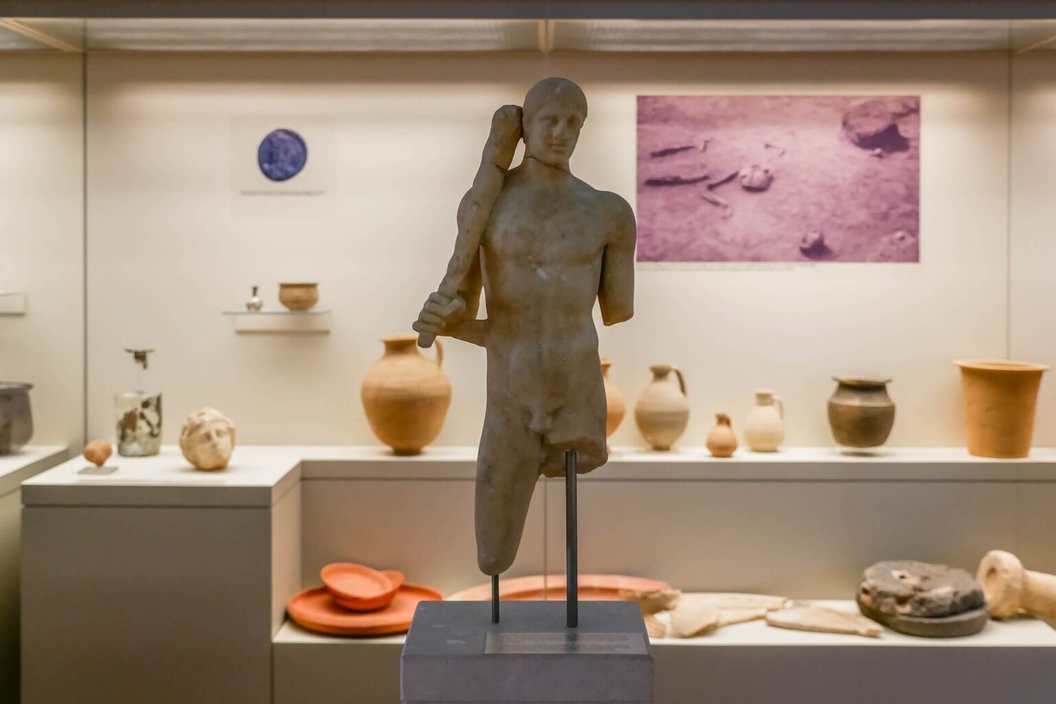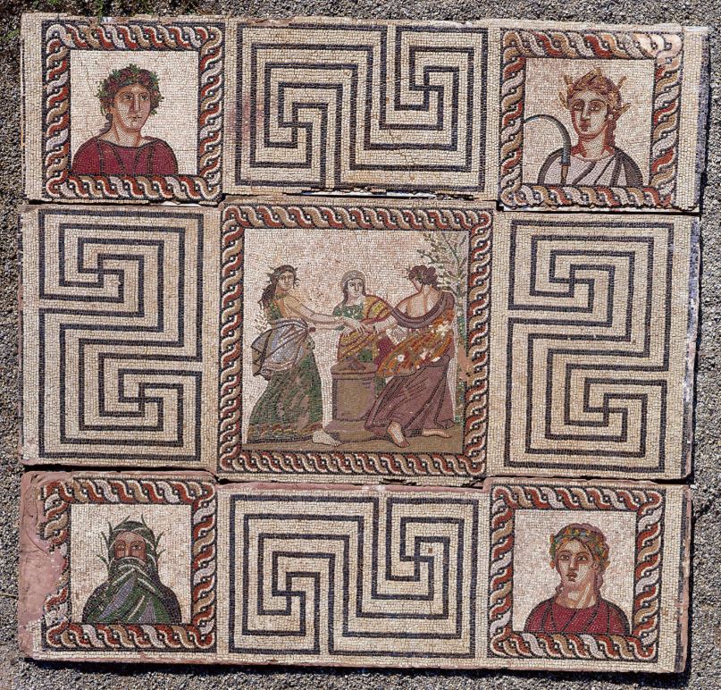 Κυρίαρχη θέση κατέχουν τα ευρήματα από τη ρωμαϊκή πόλη, που εκτίθενται στον πρώτο όροφο: Ανάμεσα σε άλλα, εδώ μπορεί να θαυμάσει κανείς υπέροχα ψηφιδωτά δάπεδα, γλυπτά, αλλά κι ένα ηλιακό ρολόι, που στόλιζαν τις αστικές ελληνορωμαϊκές επαύλεις.