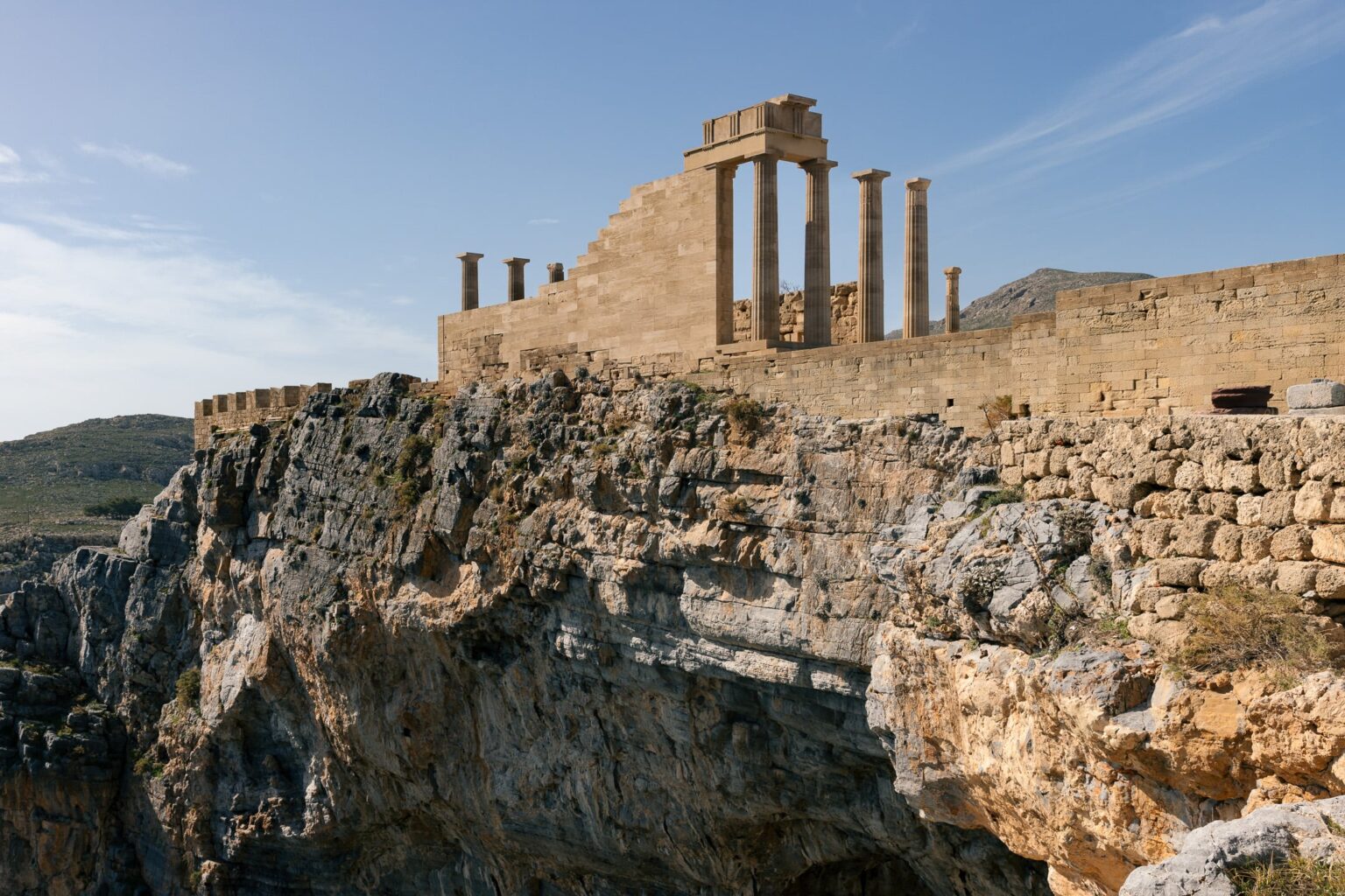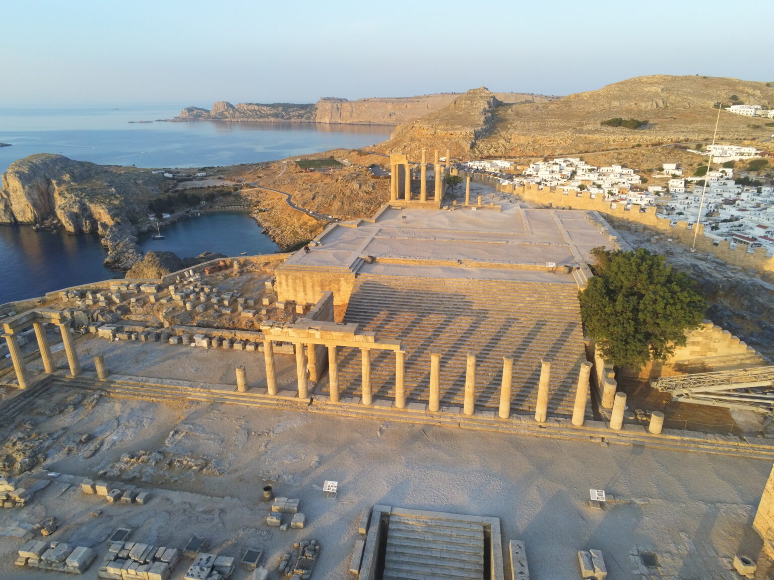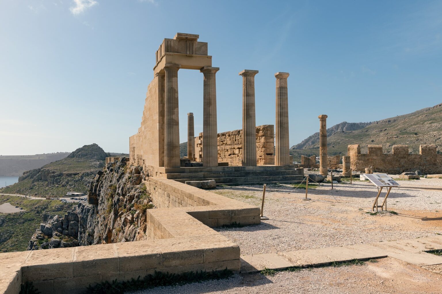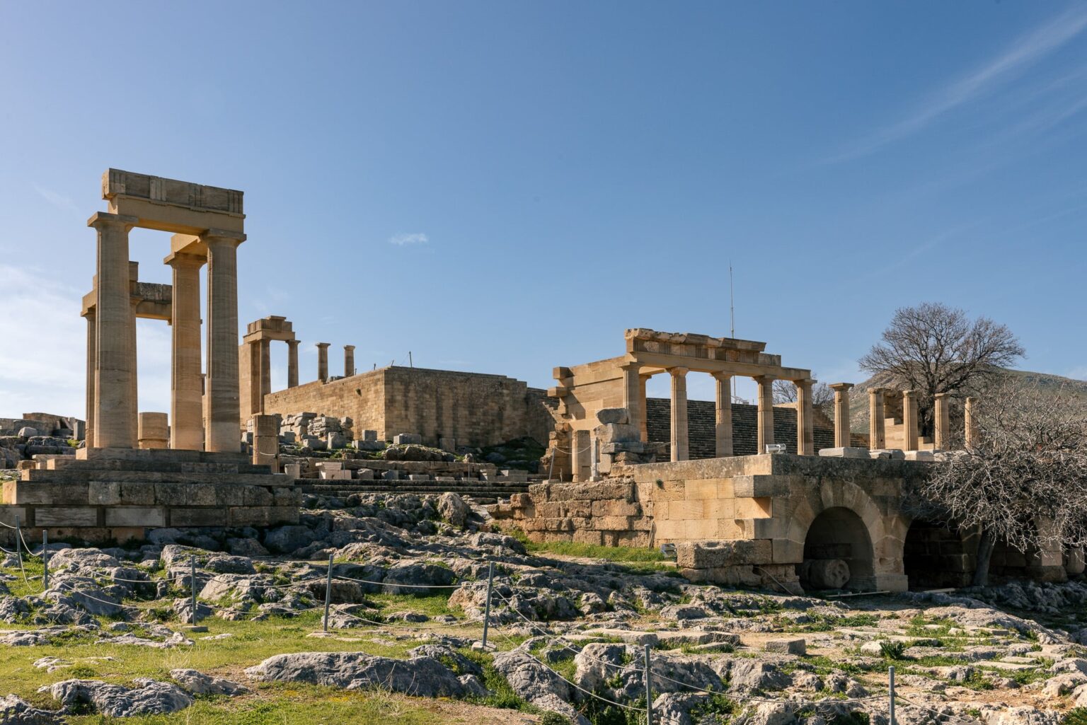 Ο δωρικός ναός της Αθηνάς Λινδίας, τετράστυλος, αμφιπρόστυλος, μέρη του οποίου σώζονται έως σήμερα, οικοδομήθηκε τον 4ο αιώνα π.Χ., όπως και τα Προπύλαια του ιερού με τη μνημειώδη κλίμακα, ενώ η «Ελληνιστική Στοά» (μήκους 87 μέτρων, με 42 κίονες) είναι λίγο μεταγενέστερη.