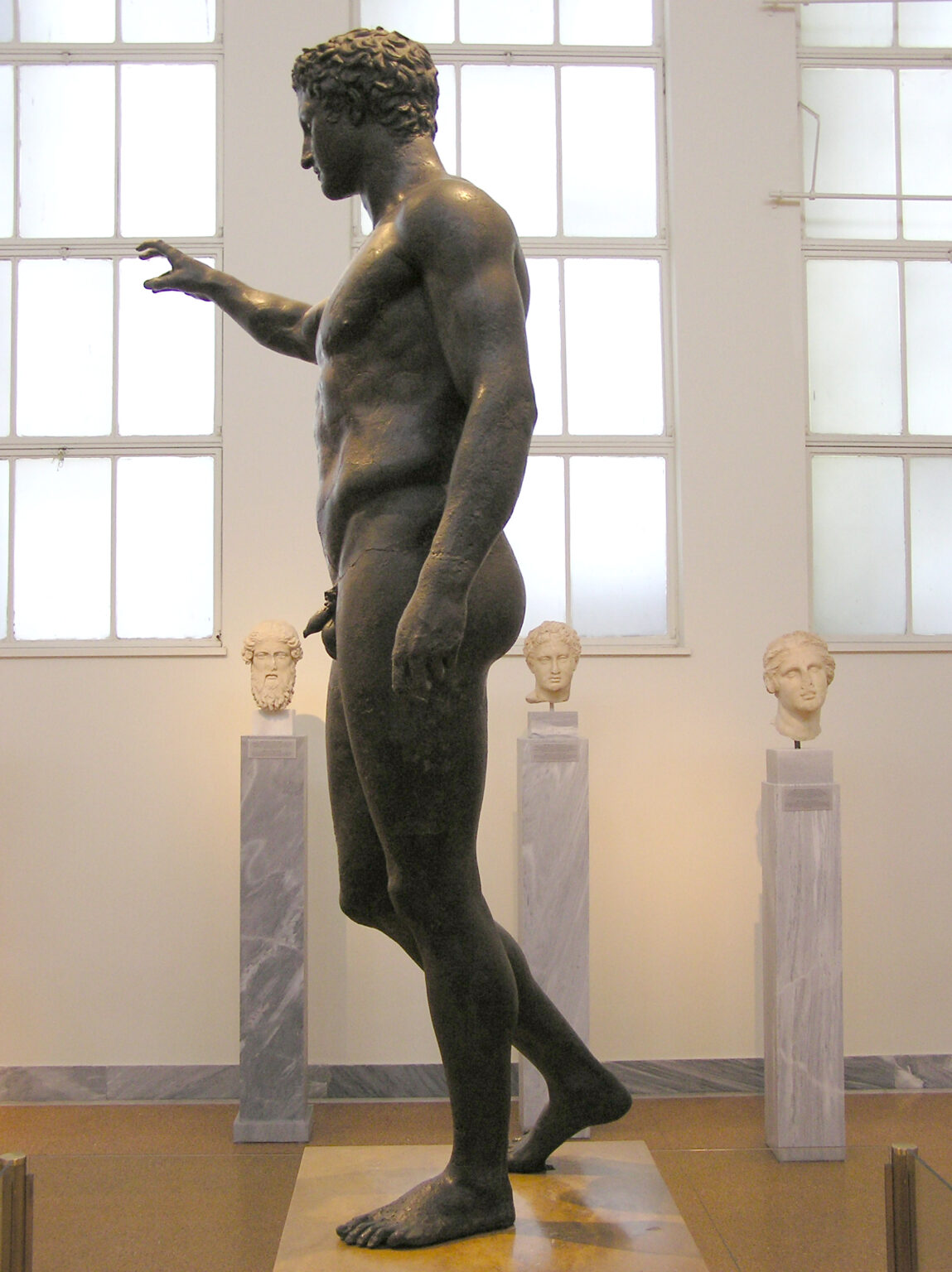 The Antikythera shipwreck is intricately entwined with the age-old practice of exact copies, as the carrier ship that was transporting the Antikythera Ephebe – along with the world-famous Antikythera Mechanism and a variety of other works – was on its way to Rome. The emblematic Antikythera Ephebe is one the few bronze sculptures that has survived in its original format, without getting copied or melted down.